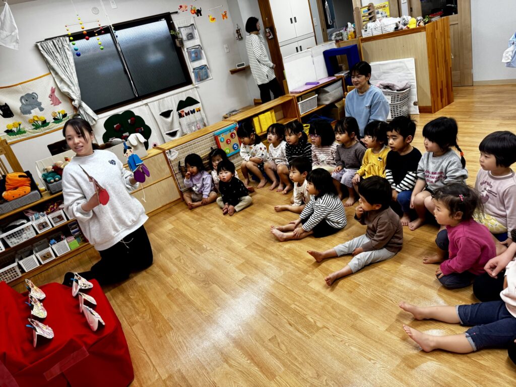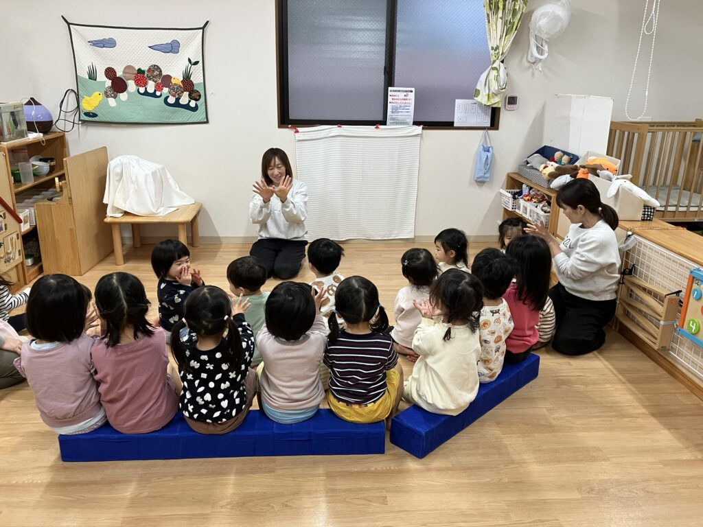 新年が明けて2週間が過ぎました。 長い休み明けも元気に登園してきたさくらぐみの子どもたち♪ 「〇〇したよ!」「〇〇たべたよ!」など、いろいろとお話も聞かせてくれました。 年始めに、全員で野見神社にお参りに行きました。 お賽銭を入れたり一礼したりと、上手にお参りしていましたよ♪ 戸外あそびでは、缶ぽっくりをはじめると興味津々であそびはじめたさくらぐみさん♪ はじめ難しそうにしていた子たちも少しずつコツを掴んで歩くのを楽しんでいます! これからも、いろいろな活動を取り入れ、子どもたちの成長を見守っていきたいと思います。