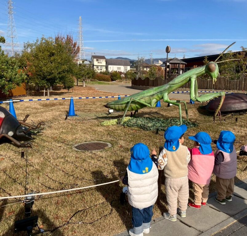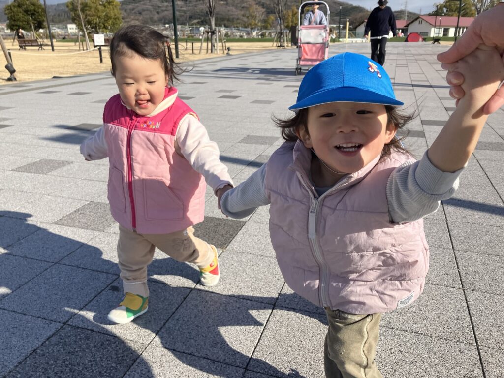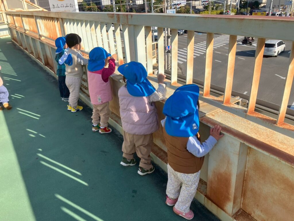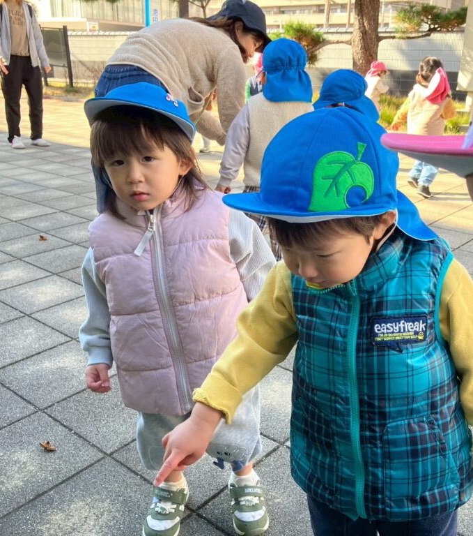 入園当初の散歩では短い距離を保育者と手を繋いで歩くことから始まり、少しずつお友だちと手を繋いで歩いてみたり、距離を伸ばしてみたりしていました。今では安満遺跡公園や高槻城公園のあたりまでお友だちと手を繋いで歩けるようになりました⭐︎⭐︎⭐︎