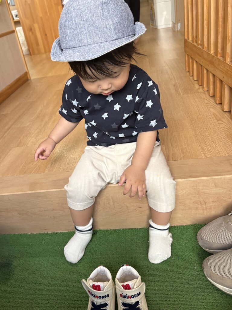 少しずつお散歩の準備(帽子を被るなど)も自分でやってみようとする姿が見られるようになってきましたよ✨